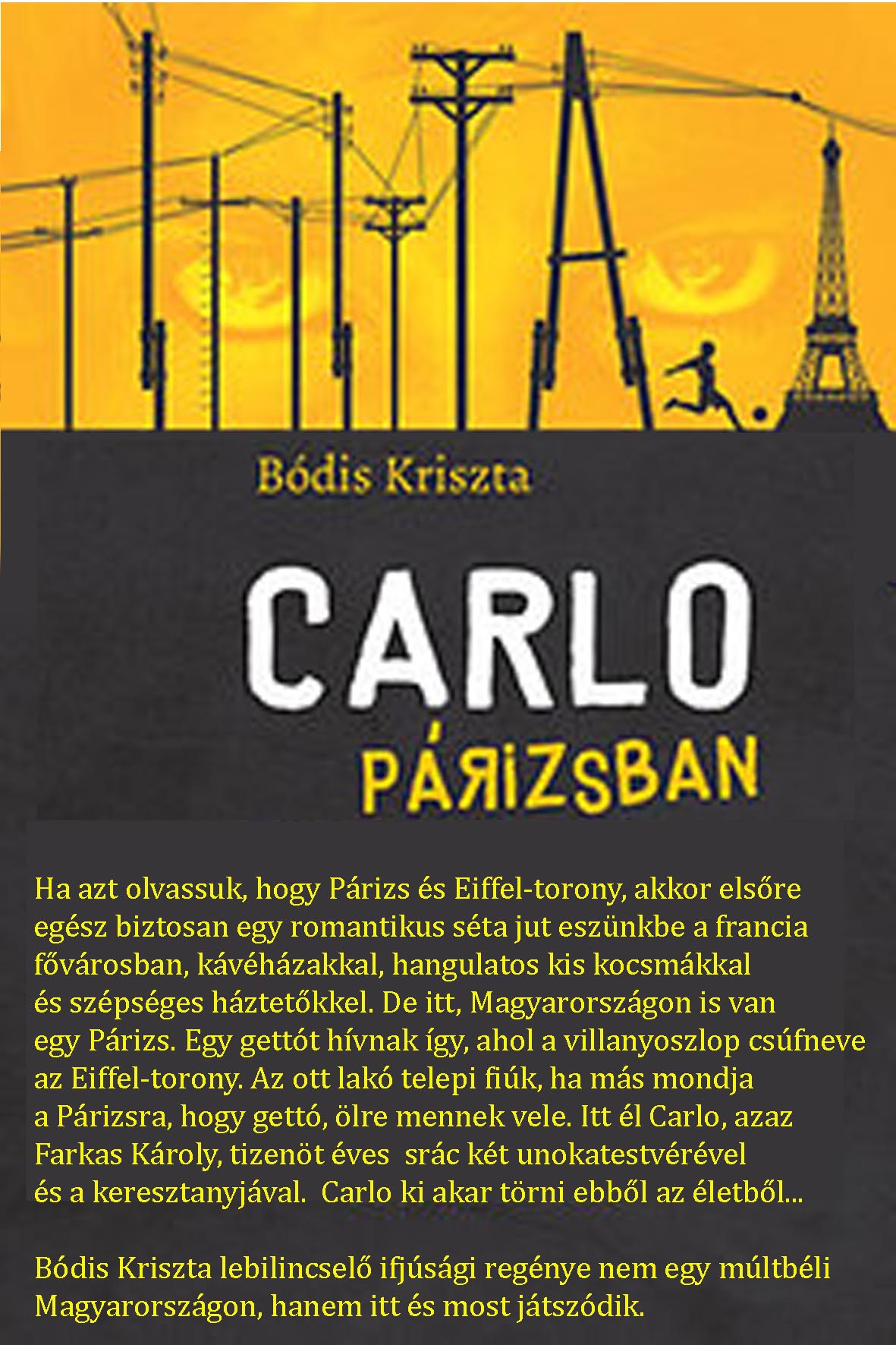December 3. este 7 óra. Három Hét Galéria, Bp., Bartók Béla út 37. Vendég Bódis Kriszta, és Carlo Párizsban című könyve (Pagony, 2014), beszélgetőtárs: Kiss Noémi és Duba Andrea (pszichiáter). Támogató a Szépírók Társasága