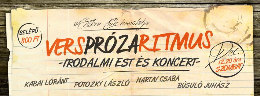December 12. Szarvas, Zebra Klub. Kabai Lóránt, Potozky László, Hartay Csaba irodalmi estje. Támogató a Szépírók Társasága