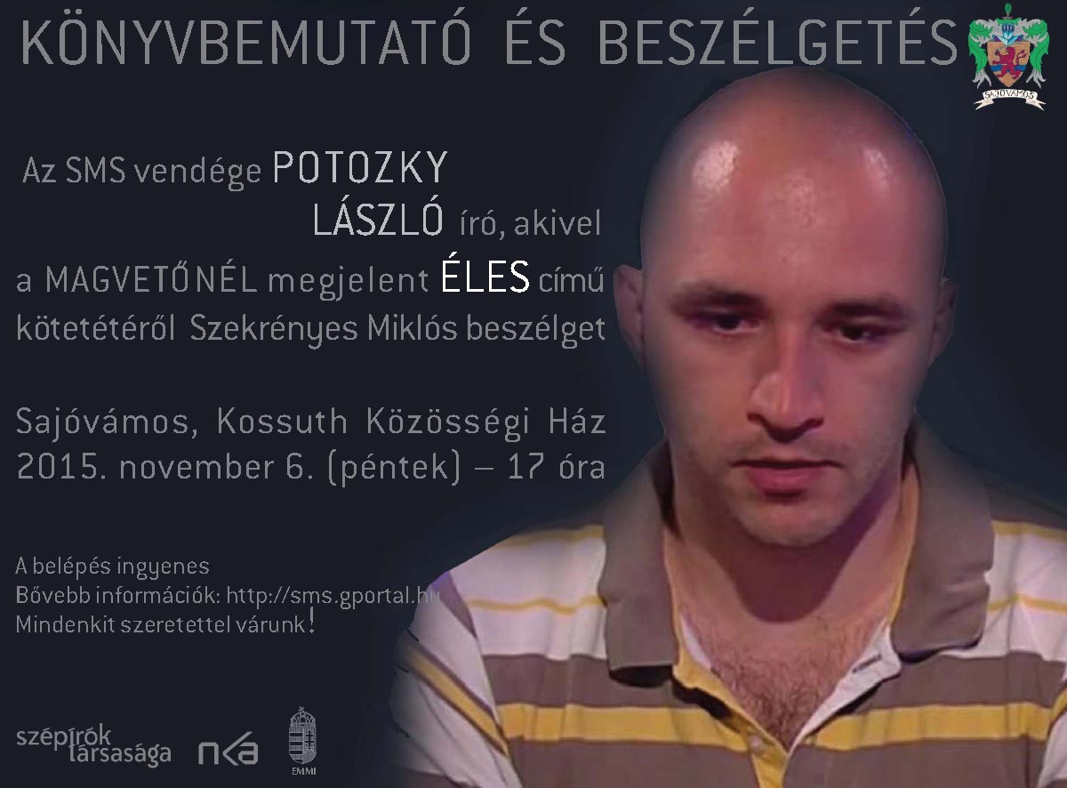 November 6. délután 5 óra. Sajóvámos, Kossuth Közösségi Ház. Az SMS vendége Potoczky László, aivel Éles c. könyvéről Szekrényes Miklós beszélget. Támogató a Szépírók Társasága